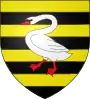 Famille de Bryas D'or à la fasce de sable, surmontée de trois cormorans de même, membrés et becqués de gueules.[24]
