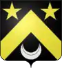 Famille de Hennin de Boussu Walcourt D'or, à la croix engrêlée, accompagnée au premier canton d'un croissant, le tout de gueules.[68]