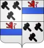 Famille Van den Abeele Palé, contre-palé de gueules et d'argent de six pièces ; un lion d'azur brochant sur le tout.[3]