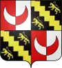 Famille de Diesbach Belleroche Écartelé : aux 1 et 4, parti de gueules et d’argent au croissant de l'un en l'autre ; aux 2 et 3, de sable à la bande vivrée d'or accostée de deux lions du même, lampassés de gueules, et posés dans le sens de la bande.[42]