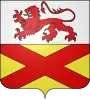 Famille d'Anethan Coupé d'or, au lion assis de gueules, lampassé d'azur, la queue fourchue et passée en sautoir, et d'azur, à quatre pals d'or.[7]
