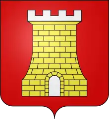 Famille de Borchgrave De gueules, au château d'or, à quatre créneaux, ouvert et ajouré d'argent.[19]