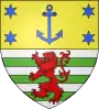 Famille Carton de Wiart Coupé, au 1 d'or à l'ancre d'azur, cantonné de quatre étoiles à six rais de même ; au 2 d’argent, à trois fasces de sinople, au lion de gueules brochant sur le tout.[28]