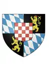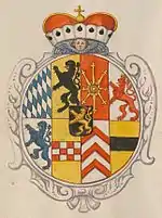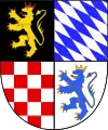 écartelé en 1 et 4 de sable, au lion d'or, armé, lampassé et couronné de gueules (Palatin) et en 2 et 3 fuselé en bande d'azur et d'argent (Bavière).[9].