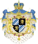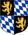 fuselé en bande d'azur et d'argent (Wittelsbach), sur-le-tout au lion d'or, armé, lampassé et couronné de gueules.