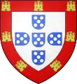 Jean II de Portugal fils et successeur d'Alphonse V d'argent au cinq écus d'azur disposés en croix, chaque écu semé de besants d'argent, à la bordure de gueules chargée de sept châteaux d'or, donjonnés de trois tours, ouverts et ajourés d'azur[2],