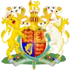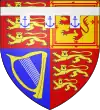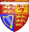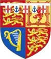 Écartelé : I et IV de gueules à trois léopards d'or armés et lampassés d'azur (d'Angleterre) ; II d'or, au lion de gueules, au double trescheur fleuronné et contre-fleuronné du même (d'Écosse) ; III d'azur, à la harpe d'or, cordée d'argent (d'Irlande) ; au lambel à cinq pendants d'argent brochant, celui en cœur chargé d'une croix de gueules (dite « de Saint Georges »), ceux à dextre et sénestre chargés d'un cœur de gueules, les autres chargés d'une ancre d'azur[13]. Écartelé : I et IV de gueules à trois léopards d'or armés et lampassés d'azur (d'Angleterre) ; II d'or, au lion de gueules, au double trescheur fleuronné et contre-fleuronné du même (d'Écosse) ; III d'azur, à la harpe d'or, cordée d'argent (d'Irlande) ; au lambel à cinq pendants d'argent brochant, ceux en cœur, à dextre et sénestre chargés d'une croix de gueules (dite de Saint Georges), les autres chargés d'une ancre d'azur[13]. |