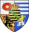 Parti de deux, coupé de trois : I, d'azur, à l'aigle d'or (du Palatinat de Saxe) ; II, d'azur au lion burelé d'argent et de gueules, couronné d'or (de Thuringe) ; III, d'or, au lion de sable, armé et lampassé de gueules (de Misnie) ; IV, d'or, semé de cœurs de gueules, au lion de sable, armé, lampassé et couronné du deuxième, brochant sur-le-tout (d'Orlamünde) ; V, en forme de sur-le-tout, burelé de sable et d'or, au crancelin de sinople, brochant en bande sur le tout (de Saxe) ; VI, d'azur, au lion coupé d'or et d'argent (de Pleissen) ; VII, d'argent à trois bouterolles de gueules (d'Angrie) ; VIII, d'or, à deux pals d'azur (de Landsberg) ; IX, de sable, à l'aigle d'or (du Palatinat de Thuringe) ; X, de gueules (du Droit de régale) ; XI, coupé d'argent, à la rose de gueules, boutonnée d'or et pointée de sinople (d'Altenbourg) et d'or, à une poule de sable, crêtée, becquée et membrée de gueules, posée sur un mont de sinople, issant de la pointe de l'écu (de Henneberg (de)) ; XII, d'argent, à trois fasces d'azur (d'Eisenberg)[5]. |