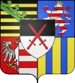 Burelé de sable et d'or, au crancelin de sinople, brochant en bande sur le tout[1],[4]. Dignité d'archi-maréchal du Saint-Empire romain germanique, charge attachée à l'Électorat de Saxe : Coupé de sable et d'argent au deux épées de gueules posées en sautoir. |