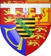 Écartelé : I et IV de gueules à trois léopards d'or armés et lampassés d'azur (d'Angleterre) ; II d'or, au lion de gueules, au double trescheur fleuronné et contre-fleuronné du même (d'Écosse) ; III d'azur, à la harpe d'or, cordée d'argent (d'Irlande) ; au lambel à trois pendants d'argent brochant, celui en cœur chargé d'une rose de gueules (dite de Saint Georges), les deux autres chargés d'une croix de gueules ; sur-le-tout burelé de dix pièces de sable et d'or au crancelin de sinople, brochant en bande sur le tout (de Saxe)[13]. |