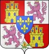 écartelé en 1 et 4, de gueules au château d'or ouvert et ajouré d'azur et en 2 et 3 d'argent au lion de gueules armé, lampassé et couronné d'or, enté en pointe du sur-le-tout d'argent à une pomme grenade de gueules, tigée et feuilleté de sinople sur-le-tout à trois fleurs de lys d'or à la bordure de gueules. |