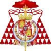 coupé : en chef parti en 1 écartelé en 1 et 4, de gueules au château d'or ouvert et ajouré d'azur et en 2 et 3 d'argent au lion de gueules armé, lampassé et couronné d'or enté en pointe d'argent à une pomme grenade de gueules, tigée et feuilleté de sinople; 2 parti en 1 d'or à quatre pals de gueules et en 2 écartelé en sautoir d'or aux quatre pals de gueules et d'argent à l'aigle de sable;II, tigée et feuilleté de sinople et en pointe écartelé en 1 de gueules à la fasce d'argent; 2, d'azur semé de fleurs de lys d'or à la bande componée d'argent et de gueules, en 3 bandé d'or et d'azur de six pièces, à la bordure de gueules 4, de sable au lion d'or, armé et lampassé de gueules; enté en pointe parti d'or au lion de sable armé, couronné et lampassé de gueules et d'argent à l'aigle éployé de gueules, membré et becqué d'or;sur le tout d'azur à trois fleurs de lys d'or à la bordure de gueules[33]. -1735 - 1754 Cardinal-prêtre de Santa Maria della Scala, archevêque de Tolède et primat des Espagnes, archevêque de Séville. |