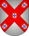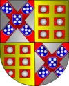 Écartelé en sautoir d'argent et d'or, au sautoir de gueules sur le tout chargé avec cinq écussons d'azur, chaque écusson chargé de cinq besants d'argent |
