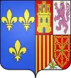 Avant 1316 : D'azur semé de fleurs de lys d'or au lambel componé de gueules et d'argent, alias de France au lambel componé de gueules et d'argent[11]. Après 1316 : mi-parti en 1 d'azur semé de fleurs de lys d'or et en 2 de gueules, à l'escarboucle fermée et pommetée d'or, allumées en cœur de sinople[8]. |