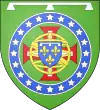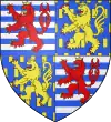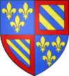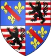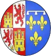 D'azur semé de fleurs de lys d'or, à la bordure componée de gueules et d'argent[12]. Écartelé des précédentes et de Bourgogne[12].
