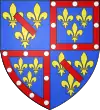 D'azur semé de fleurs de lys d'or au lambel componé de gueules et d'argent, alias de France au lambel componé de gueules et d'argent[13],[14]. |