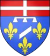 Mi-parti d'azur à trois fleurs de lys d'or à la bande de gueules et d'azur à trois fleurs de lys d'or. |