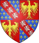 | Blasonnement | Écartelé au 1 et 4 d'azur semé de fleurs de lys d'or et au 2 et 3 d'or à un dauphin d'azur, crêté, barbé, loré, peautré et oreillé de gueules (avant 1376) Écartelé au 1 et 4 d'azur à trois fleurs de lys d'or et au 2 et 3 d'or à un dauphin d'azur, crêté, barbé, loré, peautré et oreillé de gueules (après 1376)[3]. | |