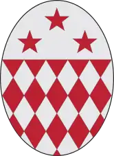 Fuselé de gueules et d'argent au chef d'argent chargé de trois étoiles de gueules. [8] |