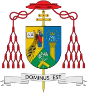 Cardinal-évêque (ou plus généralement cardinaux qui sont évêques) | Les cardinaux qui sont évêques ajoutent une croix de procession d'or derrière leur écu[1].