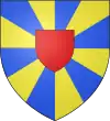 écartelé en 1 et 4 fuselé en bande d'azur et d'argent et en 2 et 3 contre-écartelé en 1 et 4 d'or, au lion de sable, armé et lampassé de gueules et en 2 et 3 d'or, au lion de gueules, armé et lampassé d'azur