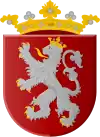 burelé d'argent et d'azur de dix pièces, au lion de gueules, la queue fourchée passée en sautoir, armé, lampassé et couronné d'or.