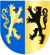 écartelé en 1 et 4 de sable au lion d'or, armé et lampassé de gueules (Brabant), en 2 et 3 d'argent au lion de gueules armé et lampassé d'or (Limbourg) [1],[2]