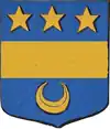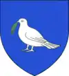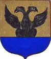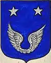D'azur à un vol d'argent, surmonté de deux étoiles d'or. |