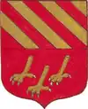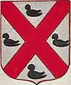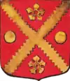 D'or à la croix treflée de sinople ; écartelé d'or au lion de gueules, sur le tout de gueules à deux pals d'or, chargés d'une fasce d'azur, fur chargée de trois losanges d'argent.