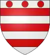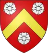 D'argent, au chevron de gueules, accompagné de 3 roses d’argent Il existe aussi : De gueules au chevron d’or, accompagné de 3 roses d’argent |