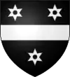 D'argent, à 3 merlettes de gueules ; au chef d’azur, chargé de 3 étoiles d’or