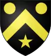 De sable, au chevron d’or, accompagné de 3 roses d’argent |