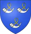 D'azur, à trois maillets d’argent, surmontés chacun d'une rose d’or
