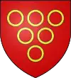 D'azur à trois bandes d'or, chargées chacune de trois tourteaux de gueules.[4] |