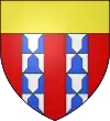 D'azur, à deux girons d'or, appointés et posés en chevron ; au chef d'argent chargé de trois couronnes ducales de gueules.[49],[50] Alias le chef chargé de trois fleurs de lys au pied nourri de gueules.[51],[50] |