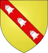 De gueules au lion d'argent et une bande d'azur brochante ; au chef de gueules soutenu d'azur et chargé de trois coquilles d'argent.[15],[16]