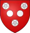 D'argent, au lion de gueules, à la fasce d'azur brochant sur le tout, chargée de trois roses d'argent.[8] |