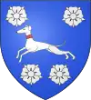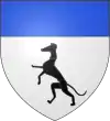 D'argent, au lévrier rampant de sable ; au chef d'azur.[31] |