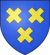 D'or, à la croix de gueules, accompagnée en chef de deux sautoirs alésés de même, et chargée, en pointe, d'un croissant d'argent.[7] |