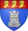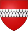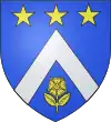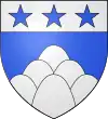 D'azur, au chevron d'or surmonté de trois étoiles de même ; au chef burelé d'argent.[15] |