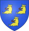 D'or, au chevron d'azur chargé de deux lions affrontés d'argent et accompagné de trois tourteaux d'azur.[20] |