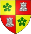De gueules, à la tour d'or maçonnée de sable, accompagnée de quatre étoiles d'or posées en pal, deux à dextre, deux à senestre.[32] |
