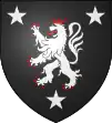 De sable au lion d'argent, armé, lampassé et couronné de gueules, accompagné de trois étoiles d'argent.[20],[21]