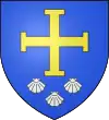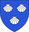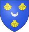D'argent à une barre (alias bande) d'azur chargée de trois coquilles d'or, accompagnée de deux merlettes de sable, l'une en chef, l'autre en pointe.[26] Alias au croissant d'azur sur le 2e quartier.[24] |