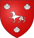 De gueules au loup cervier d'argent, à trois coquilles du même, deux en chef, une en pointe.[35] |