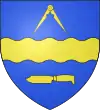 D'azur au pal d'argent accosté de quatre étoiles d'or ; au chef cousu de gueules chargé d'une fasce ondée d'argent.[13] |
