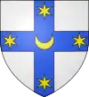 D'or au chevron de sable, accompagné en chef de trois étoiles rangées d'azur et en pointe d'un croissant de gueules.[6] |