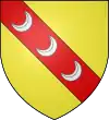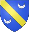 D'azur, à la bande d'or, accompagnée de deux croissants d'argent ; un en chef, et un en pointe.[17] |