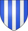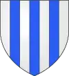 D'azur, à trois pals d'or ; au chef d'argent, chargé de trois merlettes de sable.[23] |