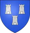 D'or, au château sommé de trois tours de gueules, maçonné de sable, à deux guidons posés en pal d'azur, ou de gueules, mis aux deux côtés de la tour du milieu, celle-ci plus élevée que les deux autres.[9]
